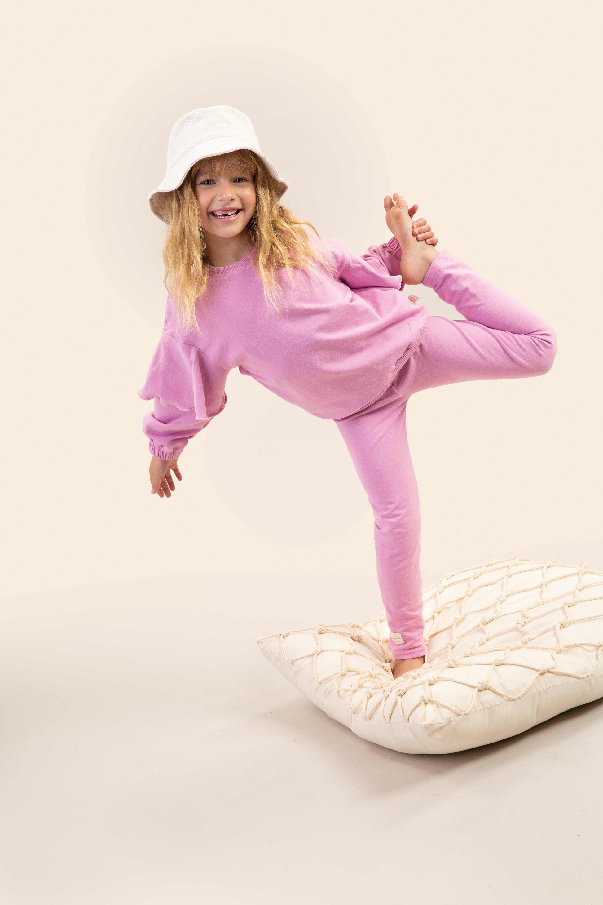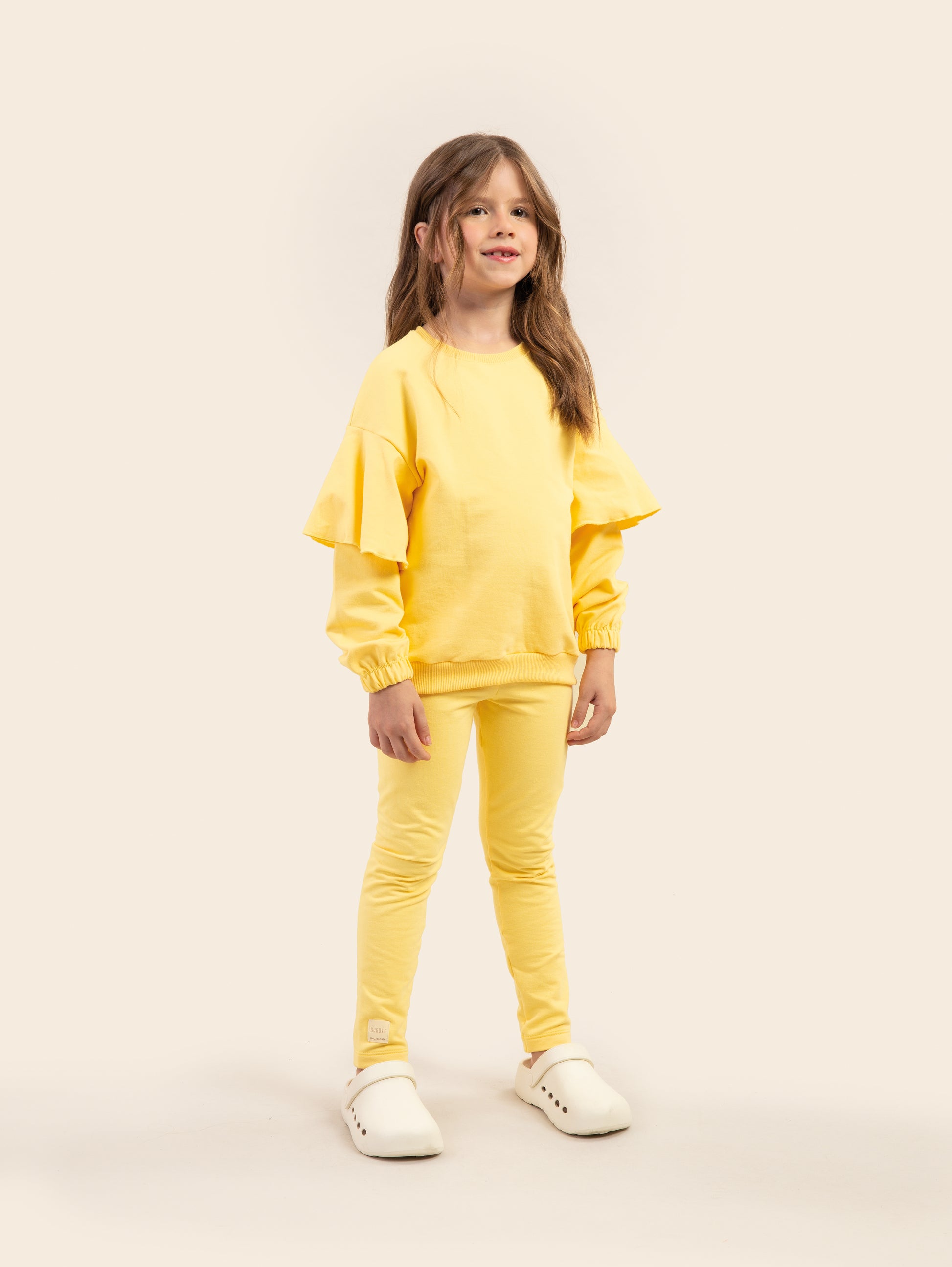 These women's children's leggings in molecotton have a waistband with a folded elastic, seamless sides and a hem with a standard hem.