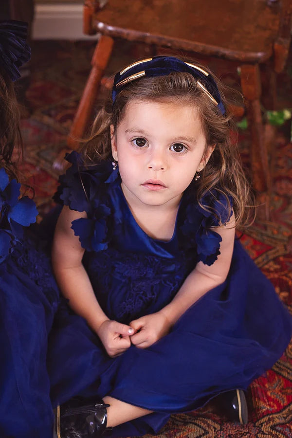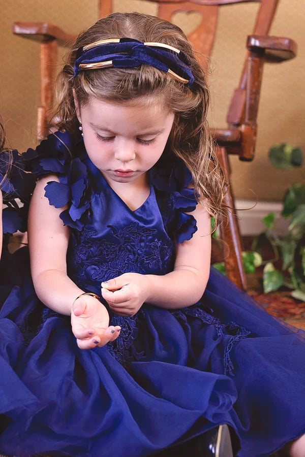 Tubular Headband/Wrap is a twist on the typical knot headband. But seriously, it's a twist! Velvet tubes are twisted into each other at the top center to create a beautiful look. And the golden rings just class it up for your sweet glam princesses!